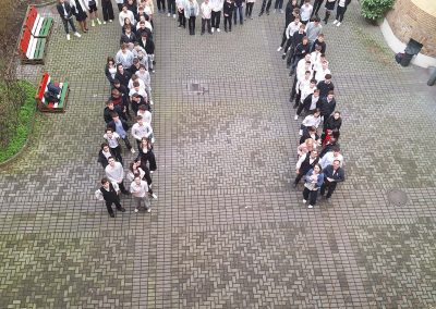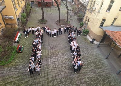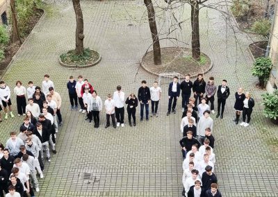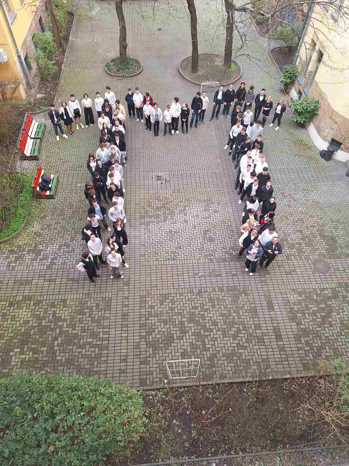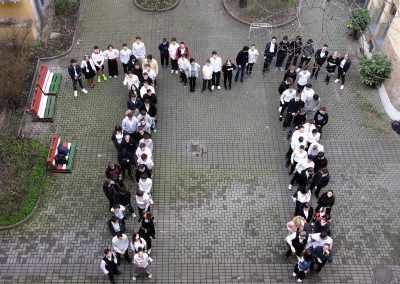 Iskolánkban idén nem hagytuk szó nélkül ezt a különleges napot: diákjaink és tanáraink kreatív ötlettel ünnepeltek – a görög π karaktert formázták meg saját testükkel, és megörökítették a pillanatot.