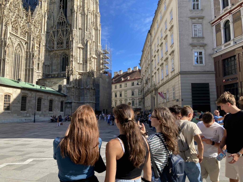 A belváros szűk utcái és elegáns épületei azonnal magukkal ragadtak minket. Megtekintettük a Stephansdom épületét, ezután egy kellemes sétát tettünk a Graben nevű sétálóutcán, amely Bécs egyik legismertebb bevásárlóutcája. Az épületek minden részletükben tükrözték a város történelmét, miközben a legmodernebb üzletek is helyet kaptak itt.