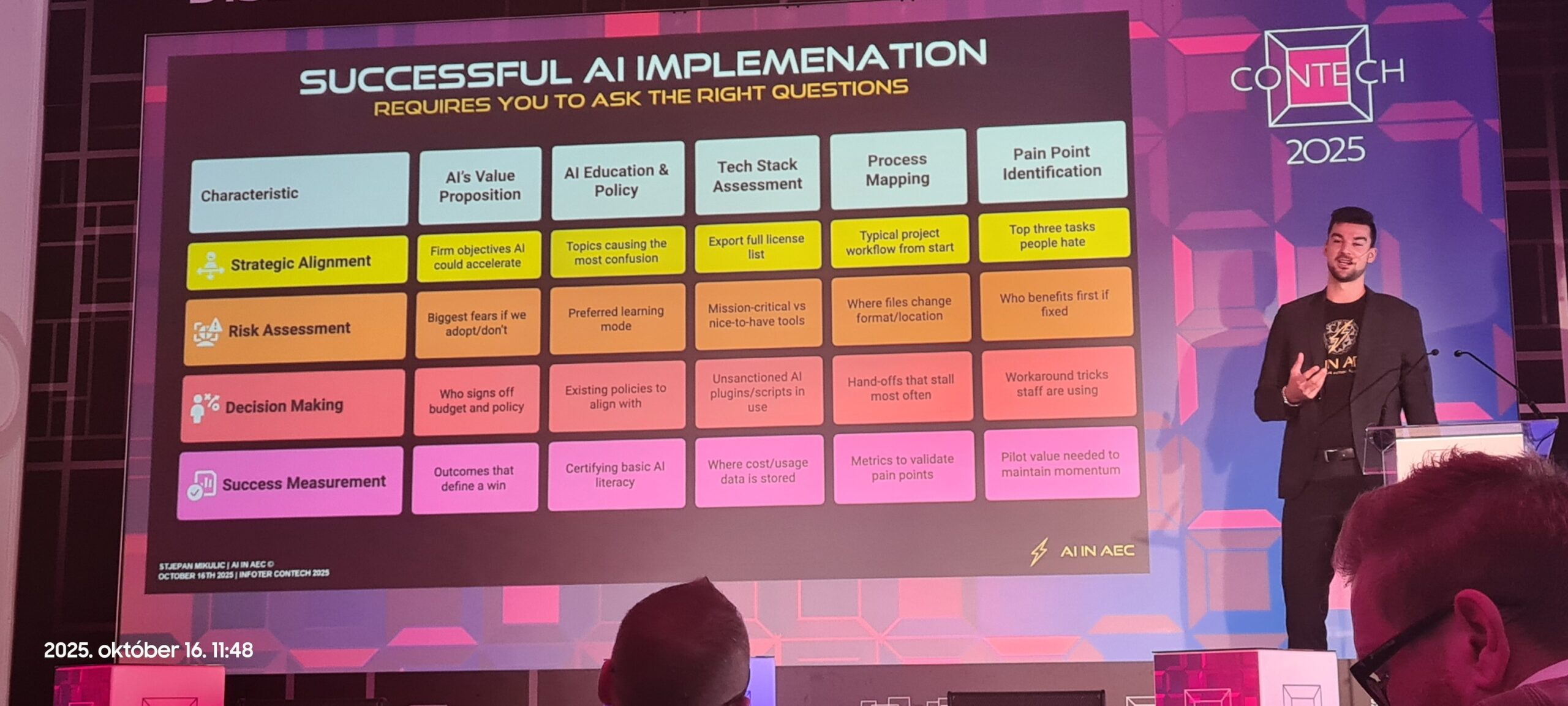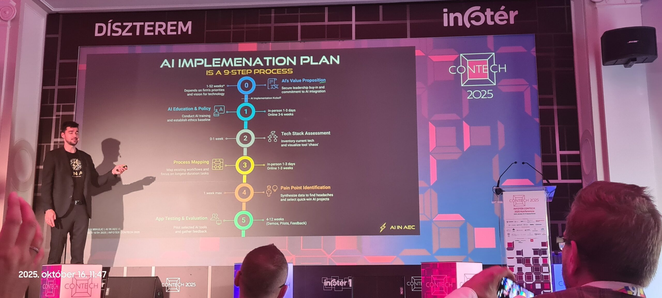 Inspiráló előadásokat hallhattunk az építőipar digitalizációjáról, az AI építőipari alkalmazásáról és lehetőségeiről, valamint a BIM jelenlegi hazai helyzetéről és a fejlődés irányairól.