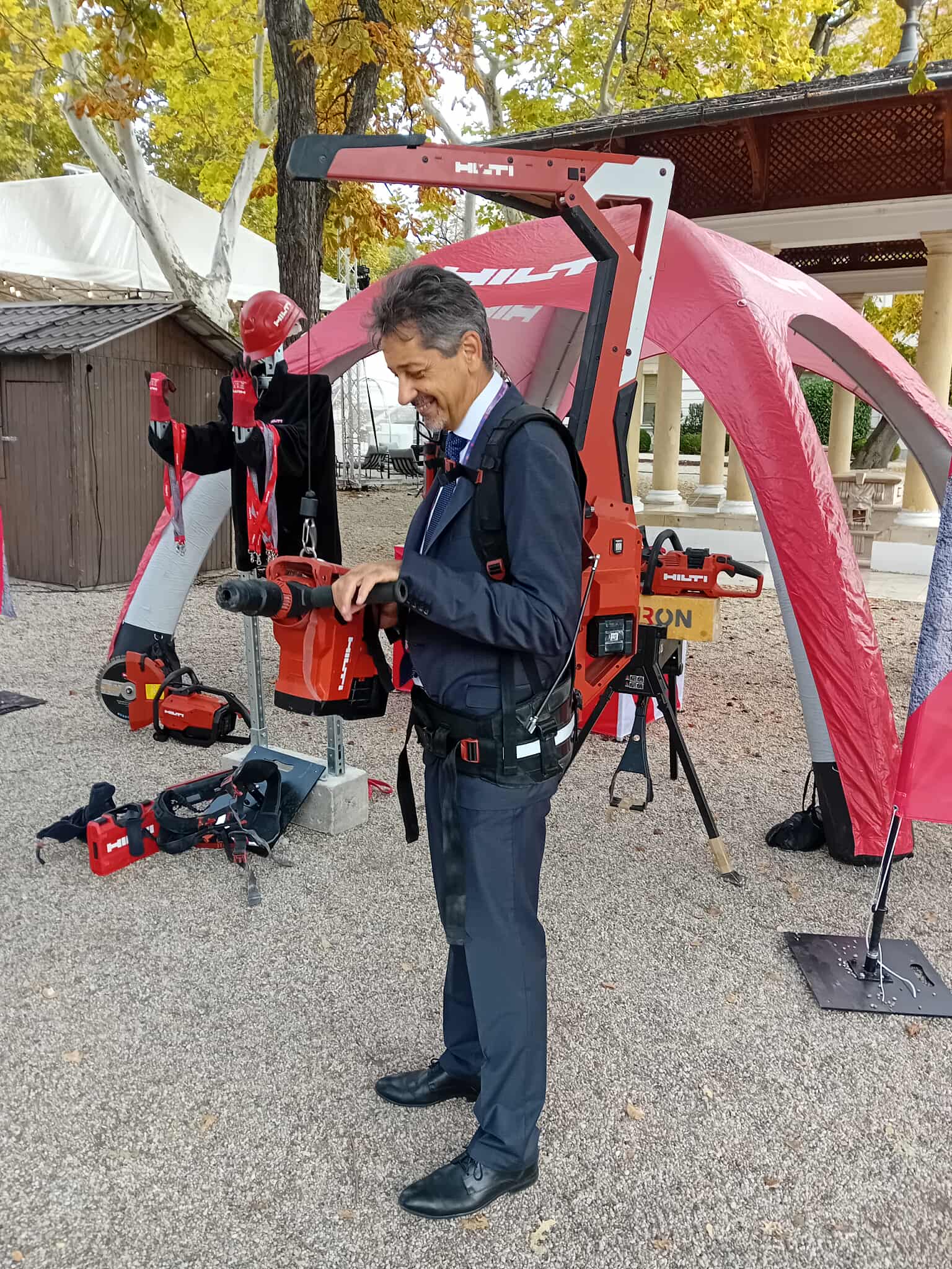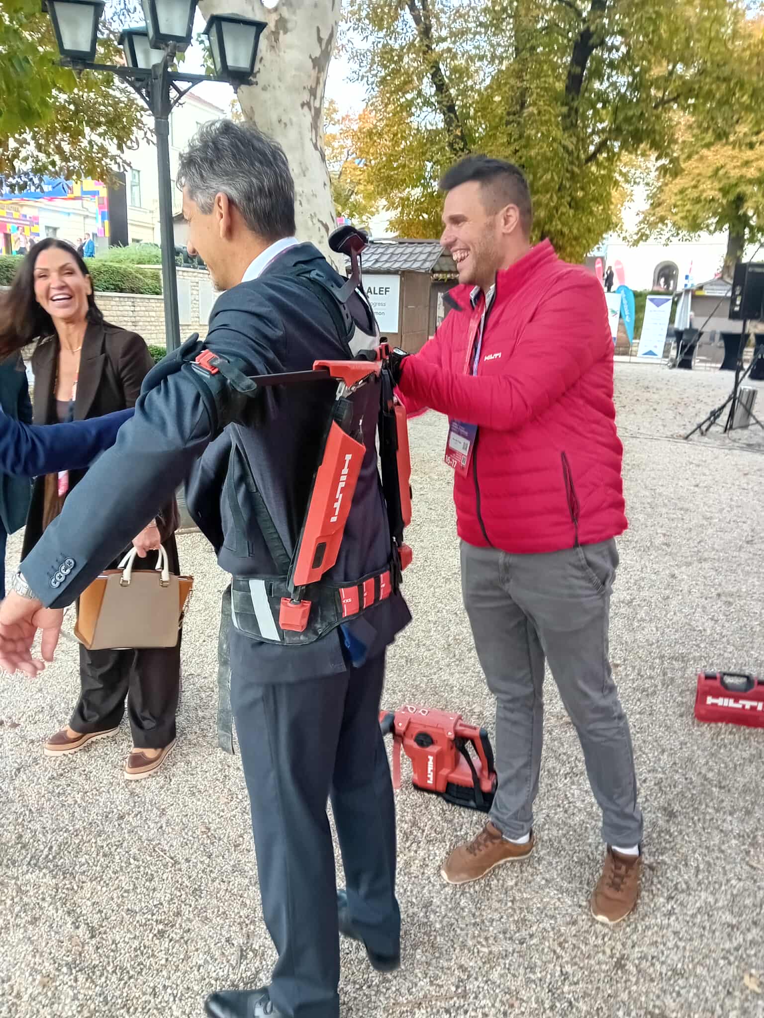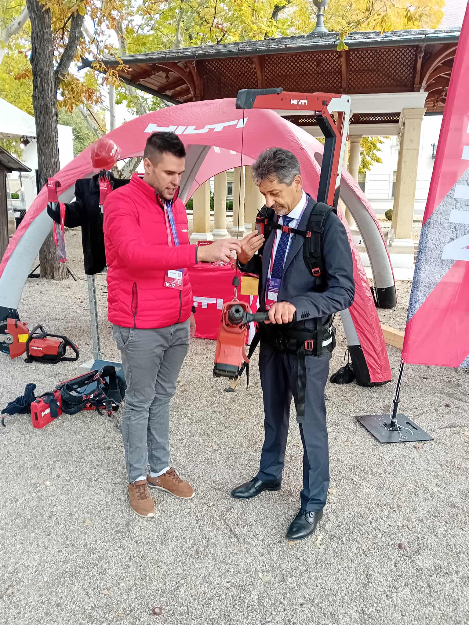 Egy érdekes gyakorlati bemutató során kipróbálhattuk a HILTI Exoskeleton eszközeit is, amely a fizikai dolgozók ergonomikus munkavégzését segítik.