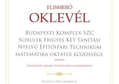 Budapesti Komplex SZC Schulek Frigyes Két Tanítási Nyelvű Építőipari Technikum Matematika Oktatói Közössége