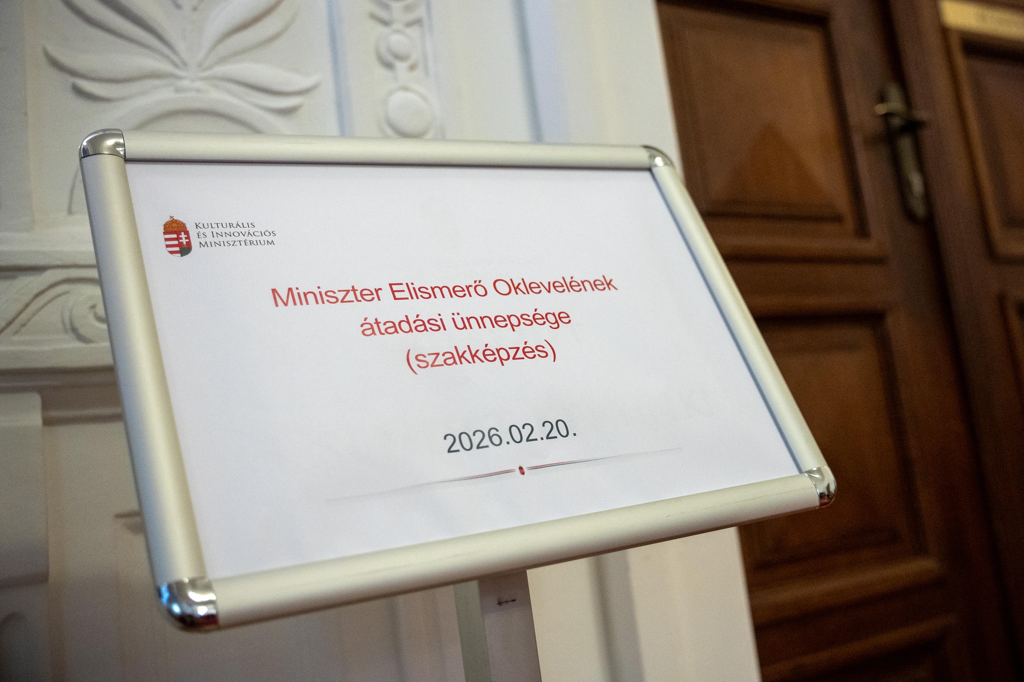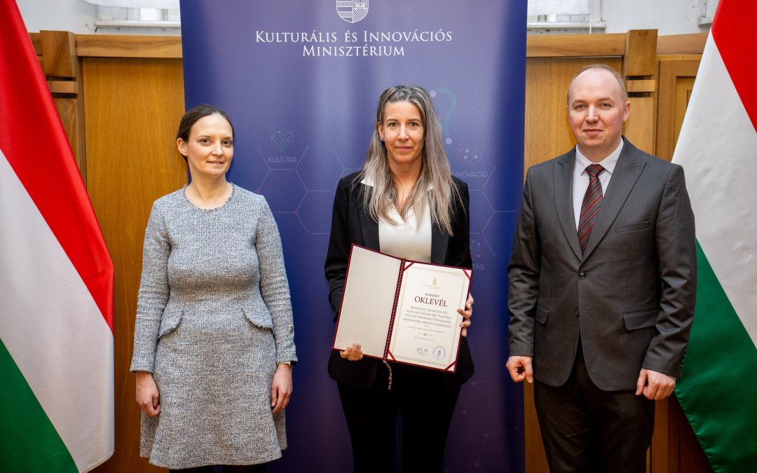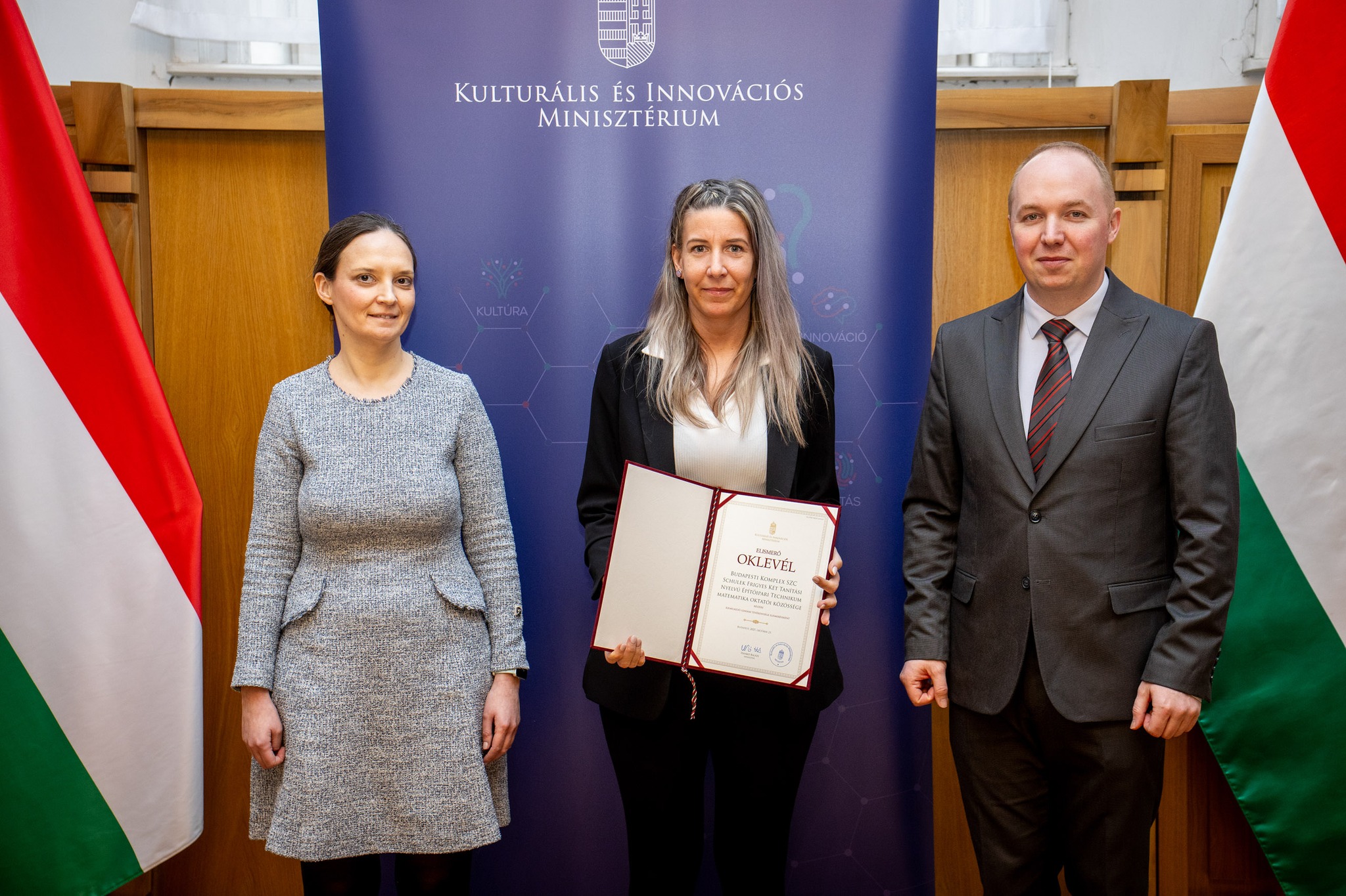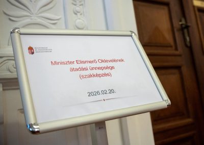 A 2026. február 20-i ünnepségen az elismerést Lukács Katinka tanárnő, a munkaközösség tagja vette át Pálmai Gergelytől, a Kulturális és Innovációs Minisztérium szakképzésért felelős helyettes államtitkárától.