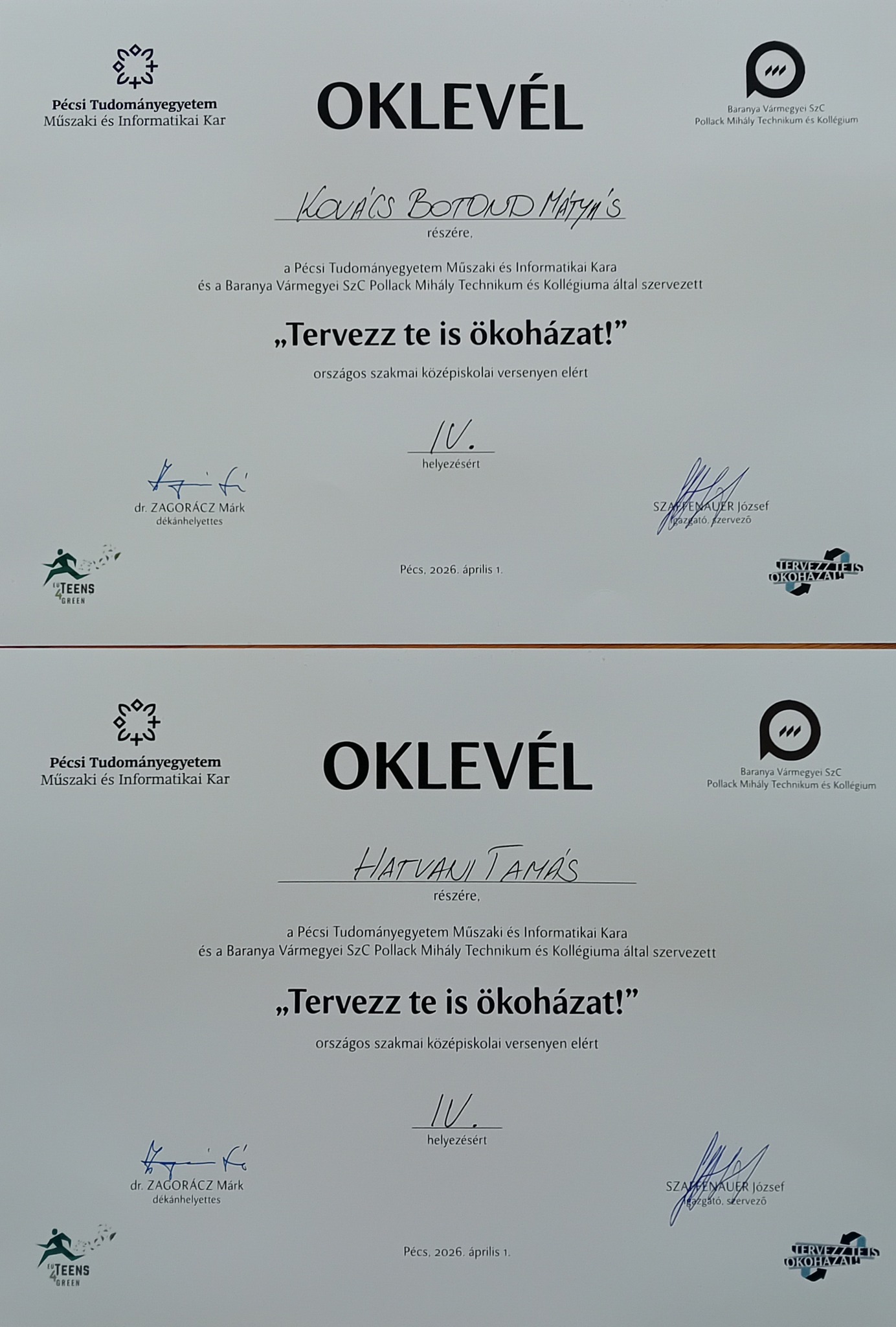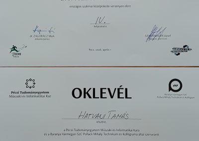 Köszönjük Szaffenauer József tanár úrnak, a Baranya Vármegyei SZC Pollack Mihály Technikum és Kollégium igazgatójának a pályázat szervezésébe rakott sok munkáját.